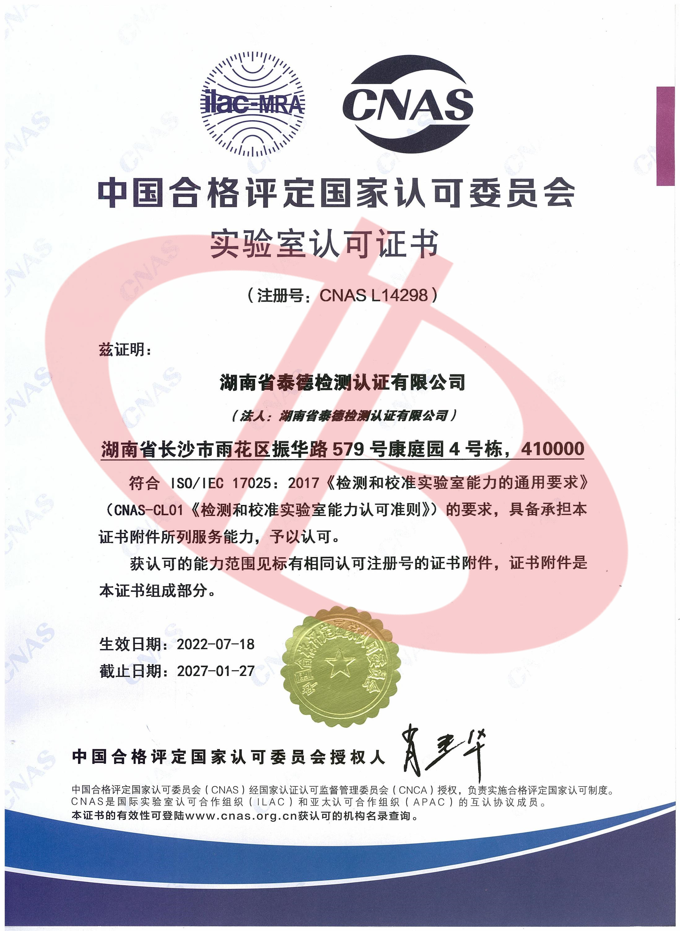 泰德檢驗(yàn)檢測(cè)資質(zhì)證書