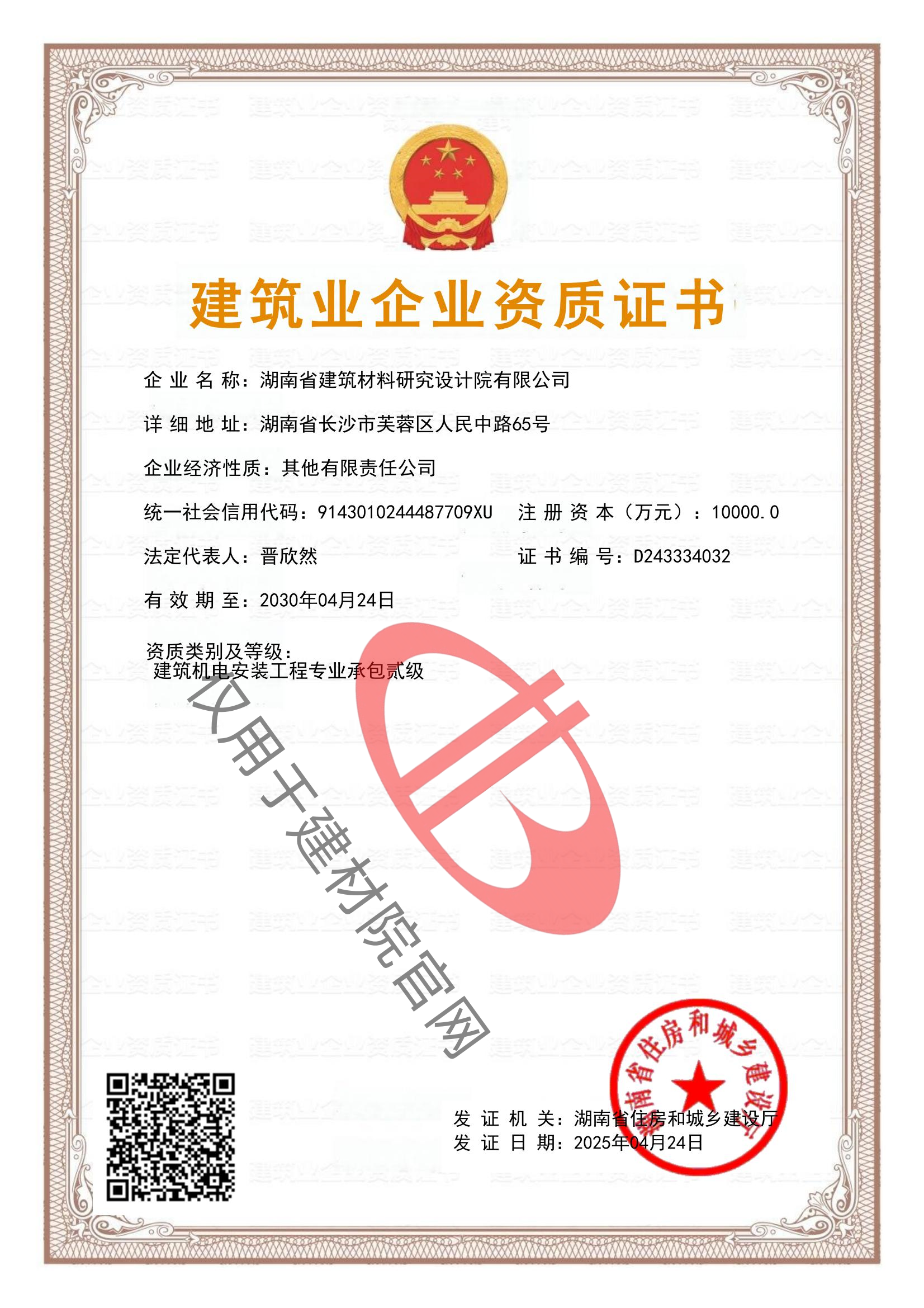 湖南省建筑材料研究設(shè)計(jì)院有限公司的前身為湖南省建筑材料研究設(shè)計(jì)院,成立于1958年,是1993年全國(guó)首批榮獲國(guó)家建材行業(yè)設(shè)計(jì)、工程總承包甲級(jí)資質(zhì)的四個(gè)科研設(shè)計(jì)單位之一。